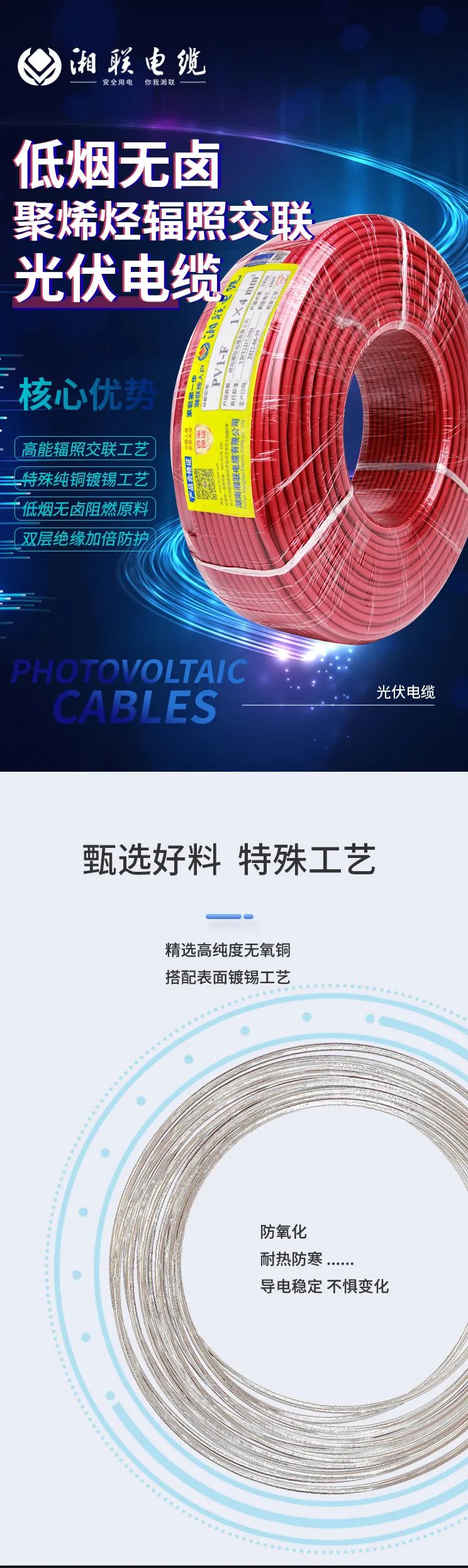 綠色環(huán)保,安全耐用 | 湘聯(lián)電纜低煙無鹵聚烯徑輻照交聯(lián)光伏電纜!