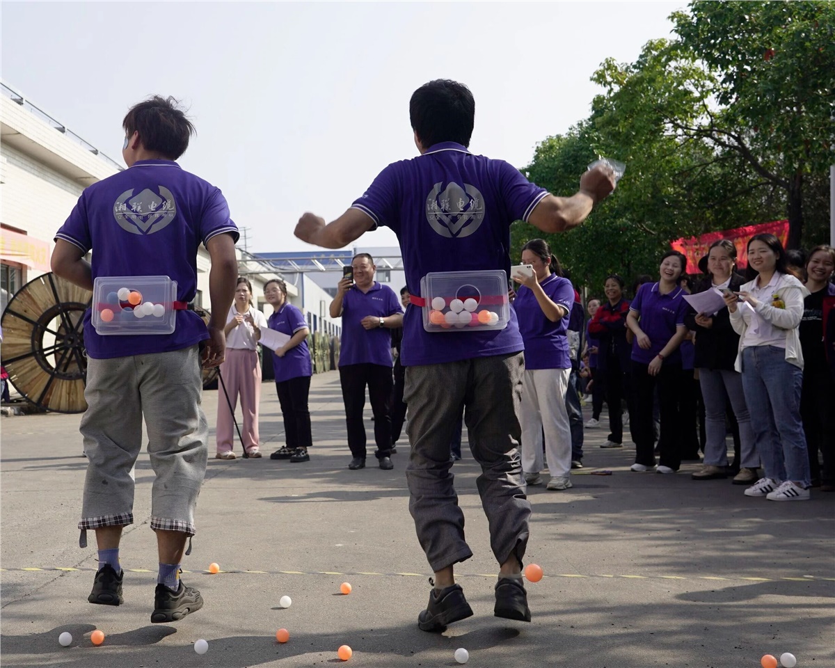本屆運動會融合個人競技和團體競爭,設(shè)有無敵風火輪、摸石頭過河、投壺、公雞下蛋四個項目,運動形式活潑多樣,且兼顧技巧性,既能讓大家感受到運動的趣味性,又能增強大家的團隊協(xié)作精神。在運動場上,運動員們奮力拼搏,比技巧和默契,拼速度和協(xié)作,啦啦隊員們吶喊、歡呼,喝彩與掌聲此起彼伏,充分展現(xiàn)出湘聯(lián)電纜積極向上、朝氣蓬勃的風采。