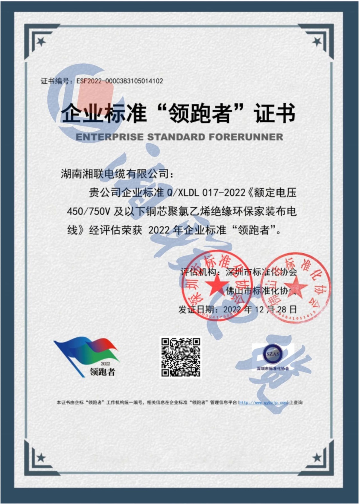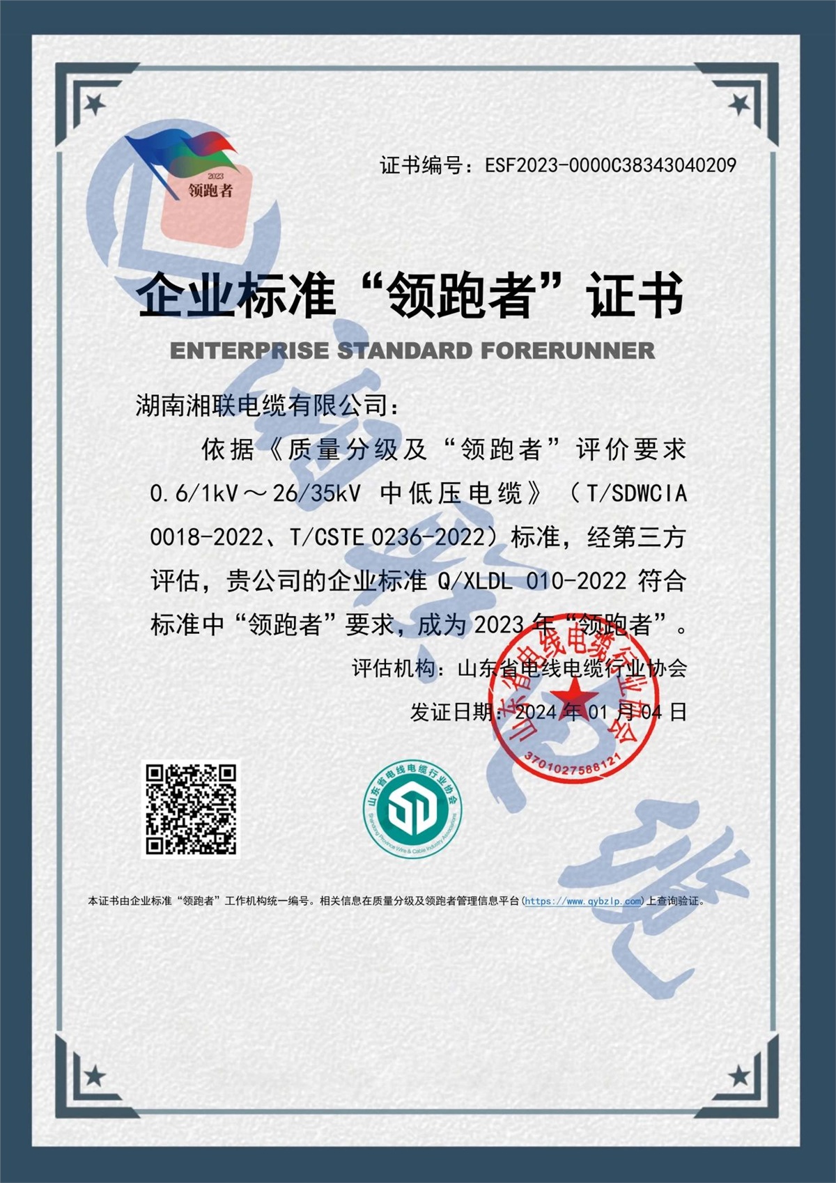 自湘聯(lián)電纜成立以來,公司研發(fā)了一系列具有自主產(chǎn)權(quán)的專利,累計申請專利50余項,多次參與編寫國家標(biāo)準(zhǔn)和團體標(biāo)準(zhǔn),多款產(chǎn)品企業(yè)標(biāo)準(zhǔn)獲評國家“企業(yè)標(biāo)準(zhǔn)領(lǐng)跑者”稱號,企業(yè)的技術(shù)實力和核心競爭力不斷提升。2023年,公司被評為“湖南省省級企業(yè)技術(shù)中心”。