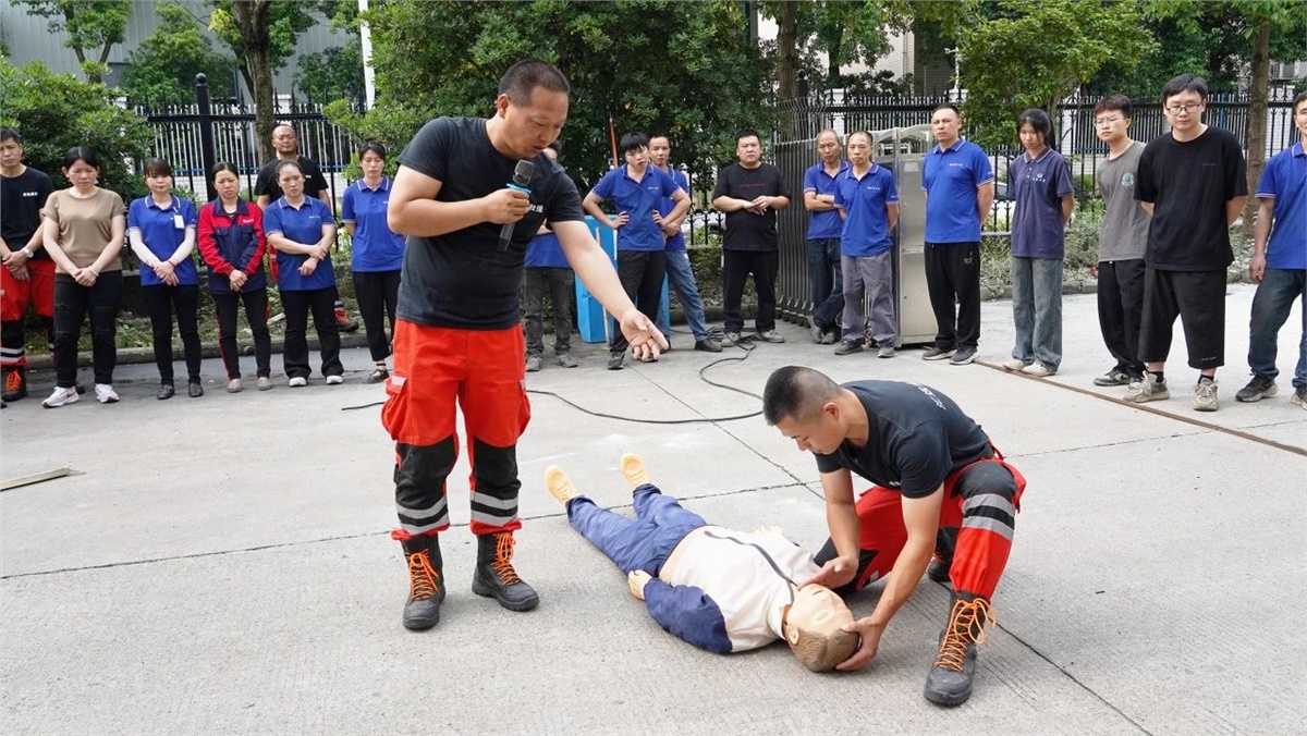 為了應(yīng)對(duì)生產(chǎn)過程中可能發(fā)生的觸電、漏電等意外傷害事故,本次消防演練還安排了觸電應(yīng)急演練,消防教員從截?cái)嚯娫础⒚撾x電源、心肺復(fù)蘇急救三個(gè)方面為大家培訓(xùn)了科學(xué)有效的應(yīng)對(duì)方法,實(shí)用性強(qiáng),真正提升了大家對(duì)觸電等事故的應(yīng)急能力